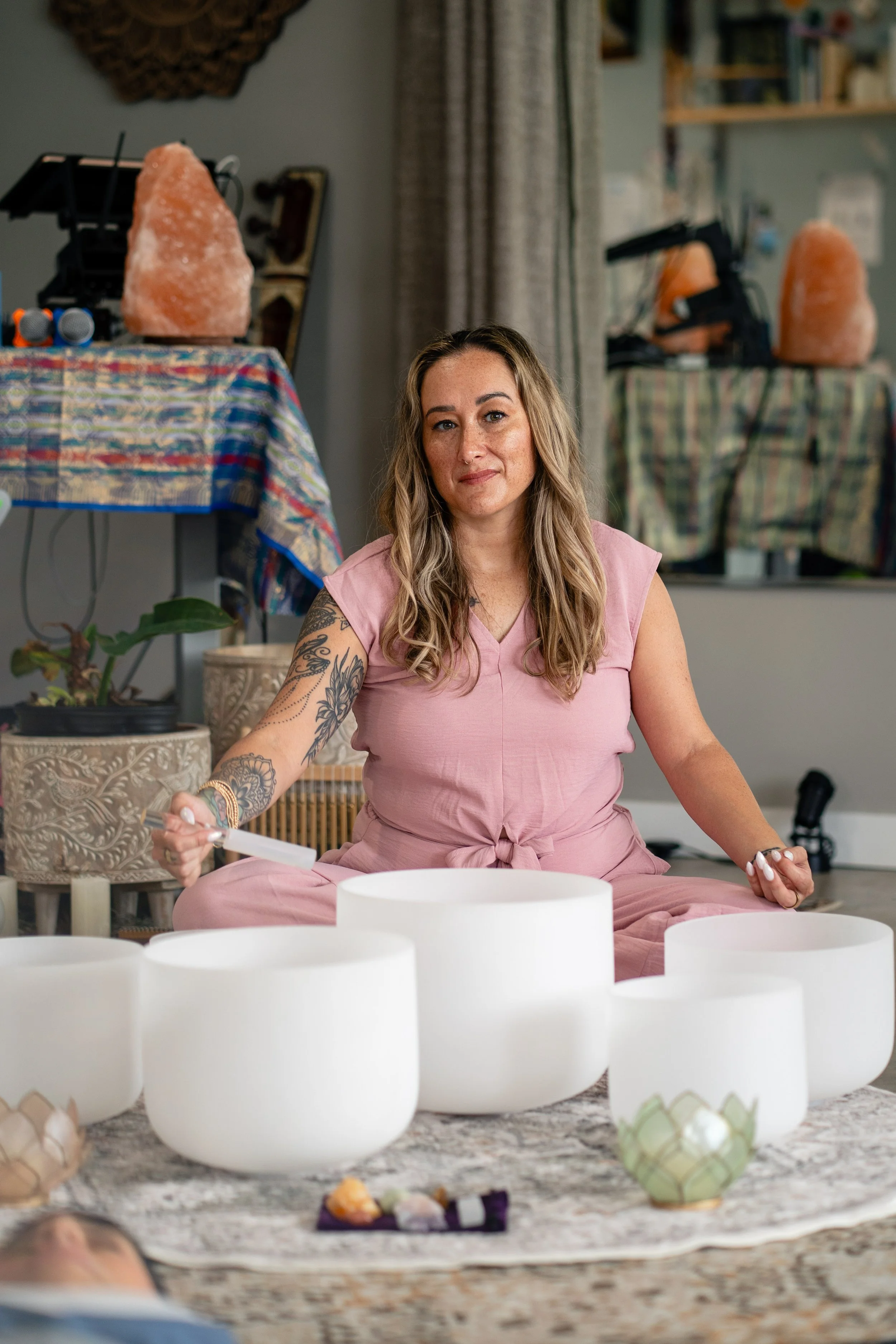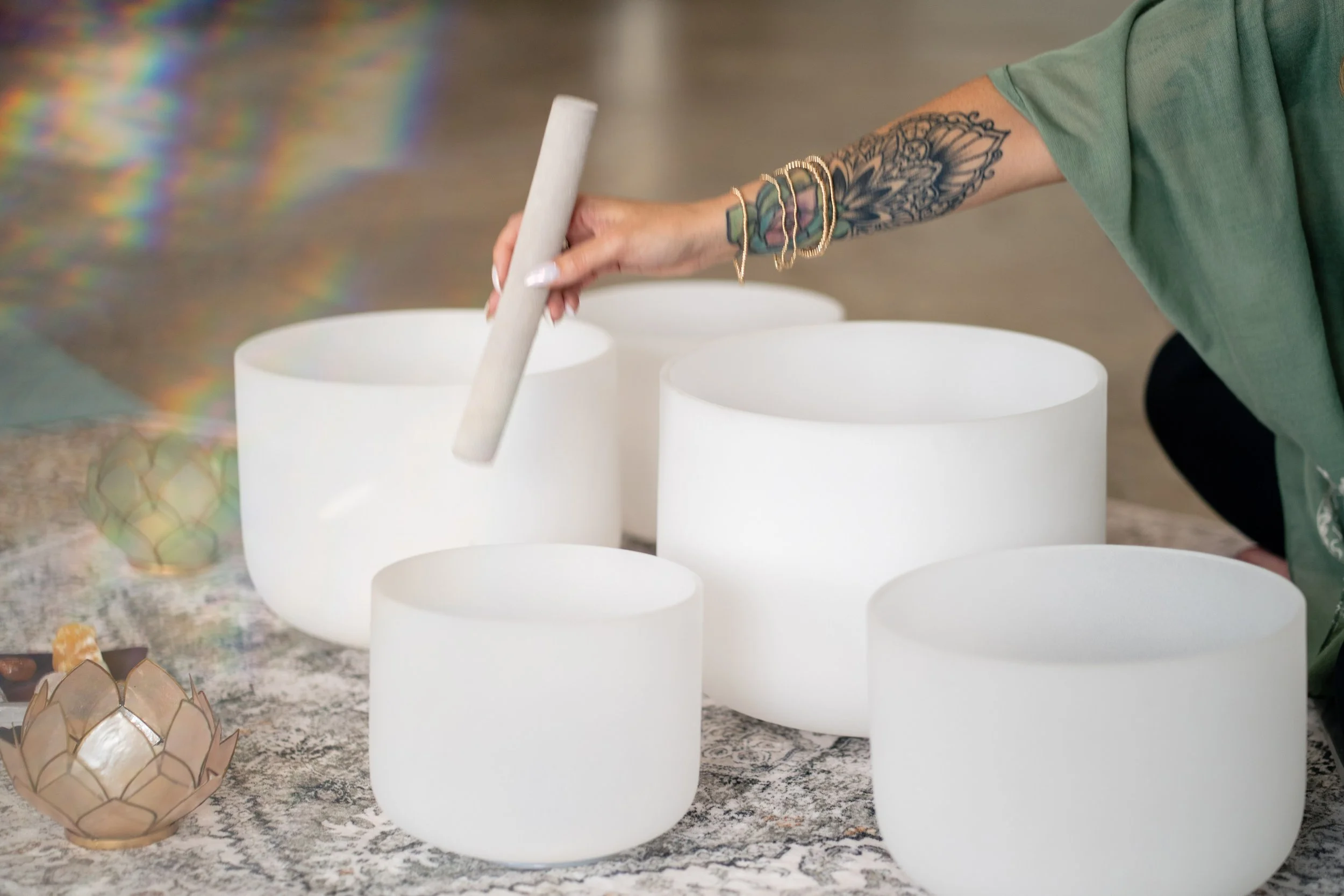 A private 1:1 sound bath is a personalized, intentional space to slow down and reconnect with yourself. Blending crystal quartz singing bowls, gentle breathwork, and guided meditation, each session is designed to support deep rest, nervous system regulation, and inner clarity. This personalized experience allows for a quieter, more focused journey—ideal for anyone who feels overwhelmed, disconnected, or stuck in constant “doing.” Courtnee offers virtual or in-home sound baths. Simply allow yourself the space to be held and supported.