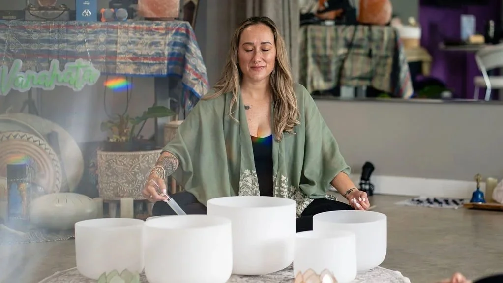 Courtnee is a certified professional sound healer who blends the frequencies of crystal quartz singing bowls, guided meditation and visualization, and gentle breathwork to support deep rest, nervous system regulation, and inner clarity. Her path to sound healing grew from her own transition out of survival mode after years of military service, where she learned firsthand the importance of creating space for the body and mind to settle.